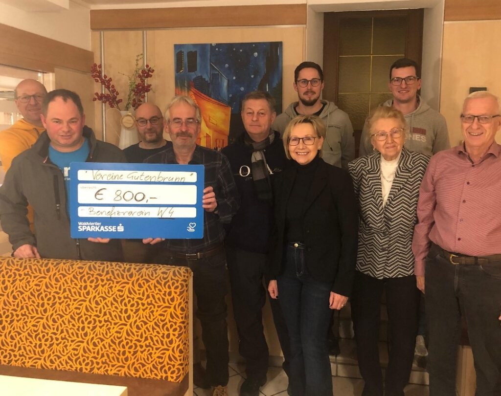 Am 9.Dezember 2024 erhielten wir im Beisein v Frau Bgm.Adelheid Ebner und den Vereinsverantwortlichen von Gutenbrun einen großartige Spende. Wir wurden gebeten, diese Summe in der Höhe von Euro 800.- an eine Familie in der Nähe weiter zu geben. Bei der Übernahme wurde auch der Name der Familie genannt u auch gebeten, dass dieser nicht veröffentlicht werden soll zum Schutz der Familie. Diesen Wunsch kamen alle nach und wir werden nach Übergabe auch ein Foto an die oben genannten weiterleiten.