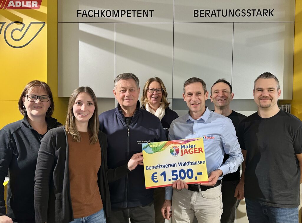 Ein ganz großes Danke an Firma Jager-Maler GmbH aus Ottenschlag, an die tollen Mitarbeiter und an die Geschäftsleitung Hr.Johann Jager für dei großartige Unterstützung wie jedes Jahr.Auch wie immer der Wunsch der gesamten Firma,die Gelder in der Umgebung weiter zu geben.Aus Versehen wurde Benefizverein“Waldhausen“auf den Spendenscheck gedruckt.Bitte um Entschuldigung!