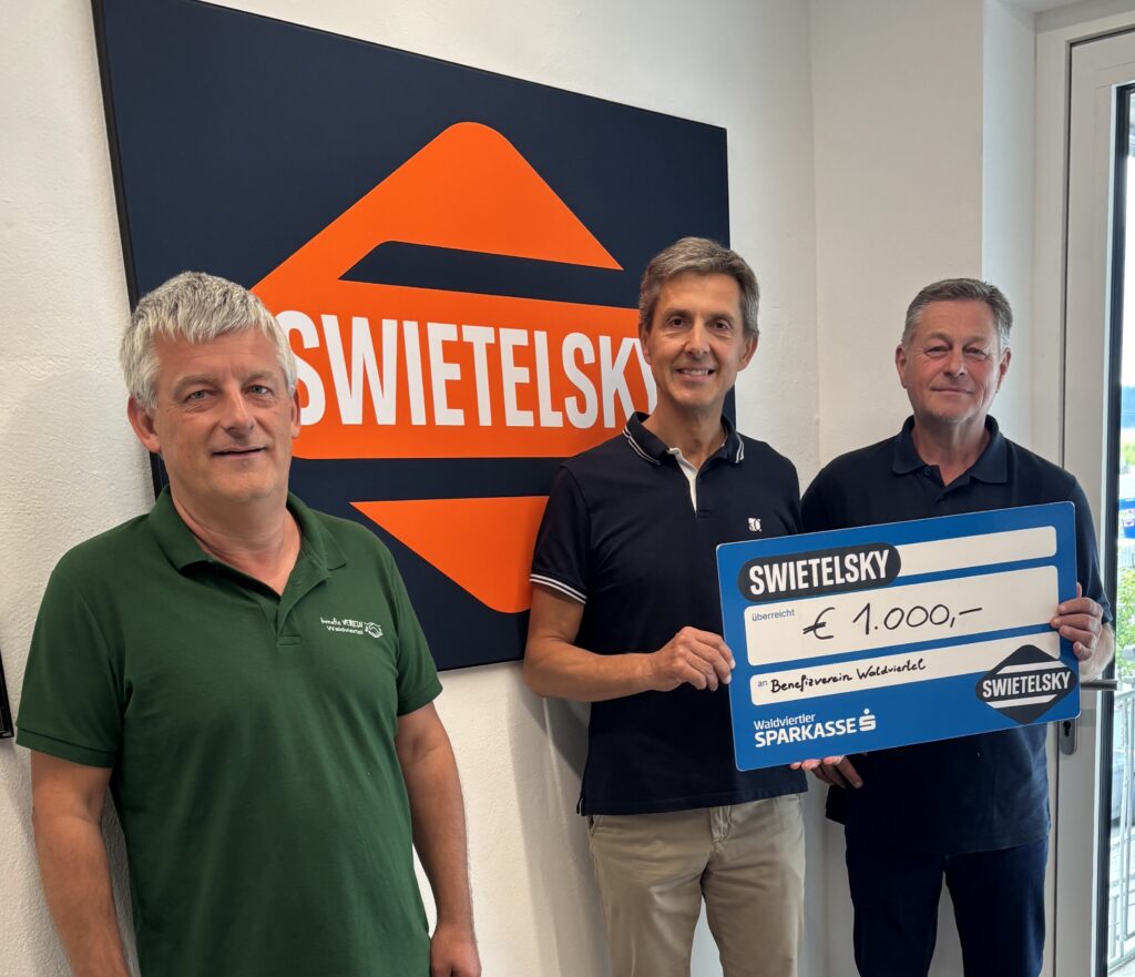 Herr Martin Bichl vom Benefizverein Waldviertel an der Seite von Herrn Dir. Baumeister Ing. Gerald Rössl und Willi Stöcklhuber durften heute eine tolle Spende in der Höhe von EUR 1.000,- übernehmen. Diese Firma ist ein sehr treuer und zuverlässiger Sponsor vom Benefizverein Waldviertel. Ein Dankeschön im Namen vom gesamten Team. Das Geld werden wir wie immer in der Region belassen, so auch deren Wunsch. Wir wünschen Herrn Ing. Rössl und seinem Team alles erdenklich Gute und viel Erfolg für die Zukunft!