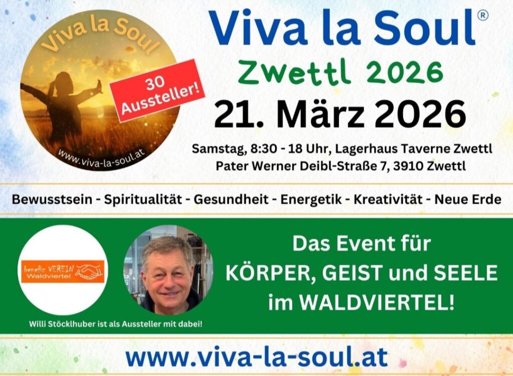 Danke an Hr. Martin Hinterlehner von Viva la Soul, dass wir am Samstag den 21. März 2026 im Lagerhaus Zwettl mitmachen dürfen. Es ist eine besondere Möglichkeit, unseren tolle Verein näher vorzustellen. Auch wir können dank Hr. Martin Hinterlehner uns präsentieren und den Besuchern in vielen Gesprächen näher bringen, welche Leistungen wir in all den Jahren schon vollbracht haben für Menschen in der Region.
