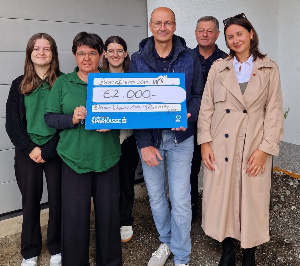 Herr Klaus Doppler aus Oberstrahlbach bei Zwettl feierte vor kurzem seinen 55. Geburtstag. Er verzichtete auf Geschenke und sammelte dafür Spendengelder, die er 1:1 an den Benefizverein Waldviertel weitergab, mit der Bitte, diese an eine Familie in der Region zu übergeben. Heute, am 28.09.2025, konnten wir diese tollen EUR 1.000,- an eine Familie im Bezirk Zwettl für dringende Therapien gemeinsam übergeben. Wir, Herr Martin Hinterlehner von Viva la Soul mit EUR 500,- und der Verein, stockten es auf EUR 2.000,- auf. Das Geld geht direkt nach Vorlage der Rechnung an das Rehazentrum, so auch der Wunsch der Familie.