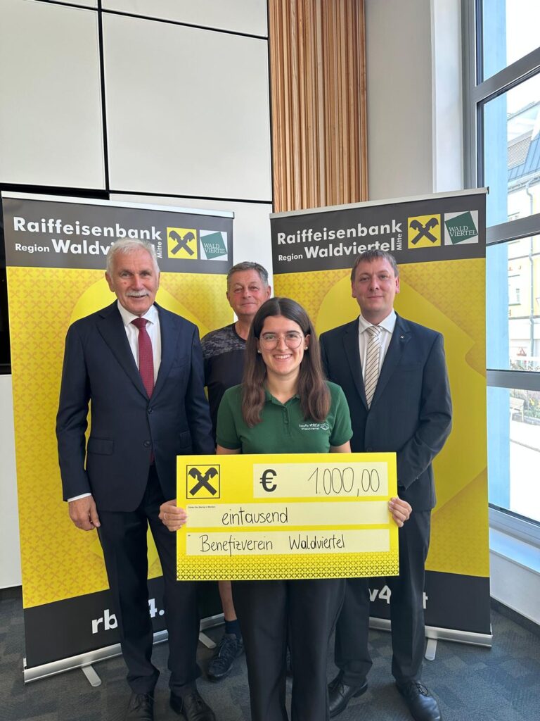 Auch heuer dürfen wir uns bei der Raiffeisenbank Region Waldviertel Mitte aus Zwettl für den tollen Spendenbeitrag in der Höhe von EUR 1.000,- bedanken. Verena Bichl vom Benefizverein Waldviertel und meine Person durften am Freitag, den 29. August 2025, diese tolle Summe in Empfang nehmen. Ein Dankeschön an Herrn Obmann Gerhard Preiß und Prok. Christoph Dorrer von der Geschäftsleitung. Ein aufrichtiges Dankeschön vom gesamten Team!