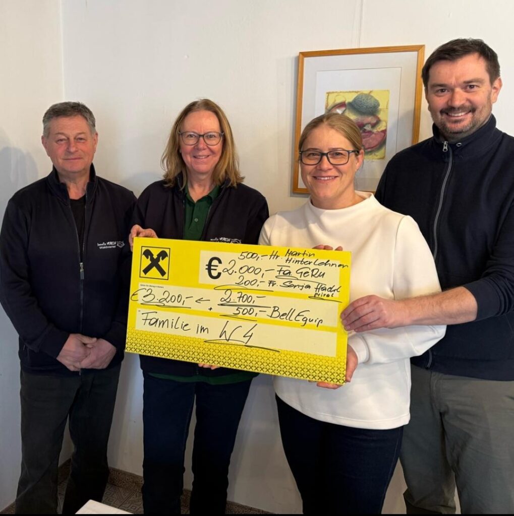 Die Spendengelder stammen von:“ Fa.GeRu aus Martinsberg(nach Rücksprache bei der Firmenleitung)Martin Hinterlehner,Frau MA Sonja Hackl(private Spende) u von Fa.BellEquip Zwettl
