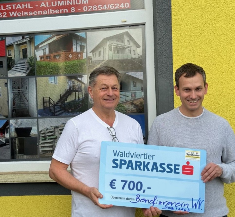 Wie seit Jahren erhalten wir von der tollen Firma“ Metalltechnik Ramharter GmbH aus Weißenalbern ganz einfach und unkompliziert eine Spende von Euro 700.-Hr. Ing. Klaus Ramharter mit seinen Eltern und den Mirabeitern zollen unseren Verein große Anerkennung und dafür sind wir sehr dankbar. Außerdem verbindet Klaus und meine Person eine langjährige Freundschaft durch den Fußball.Klaus, dir und allen in der Firma ein ganz großes Dankeschön im Namen vom Benefizverein. Wir werden die Spendensumme auch so gut es geht, in der Region Gmünd und Umgebung weitergeben. Für 2026 wünschen wir euch allen viel Erfolg und Gesundheit.