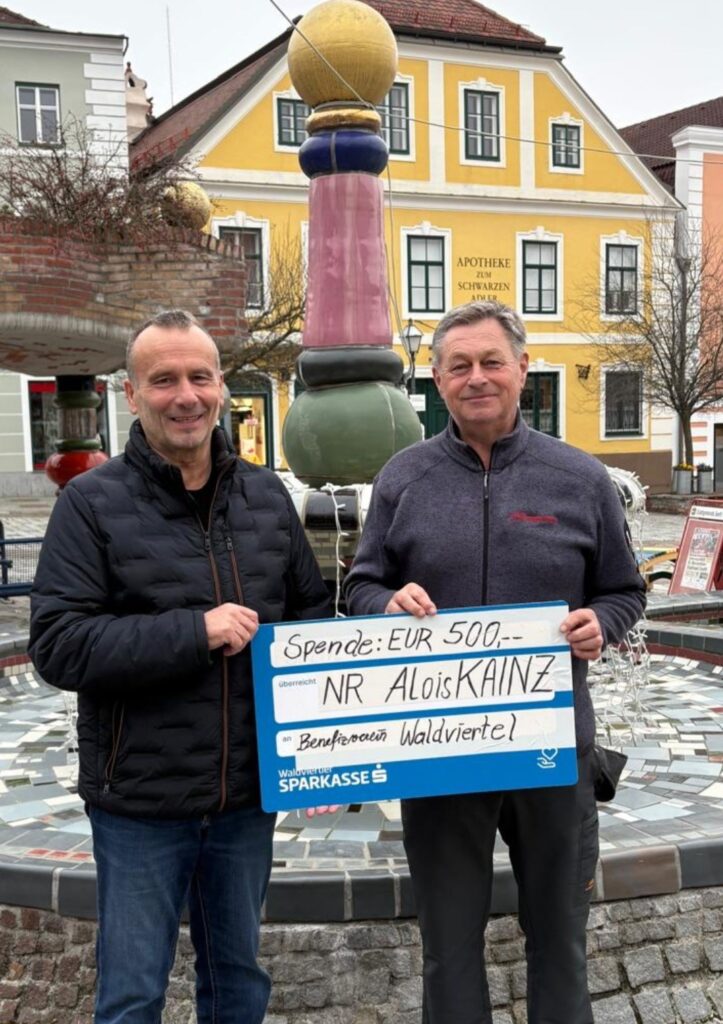 Nach dem Waldviertler Advent 2024 kam Herr Nationalrat Alois Kainz auf mich zu und sagte: „Willi, dass war ein unglaublich toller Abend und eine volle Einstimmung in die Adventszeit. Daher möchte ich euch eine Anerkennung von EUR 500,- übergeben. Auch heuer rief mich Herr Nationalrat Kainz an und spendet uns wieder eine tolle Summe in der Höhe von EUR 500,-. Die Übergabe mit Scheck und Foto fand am Freitag, den 14.11.2025 in Zwettl statt. Ein Dankeschön lieber Alois für die wirklich tolle Unterstützung und langjährige Freundschaft.