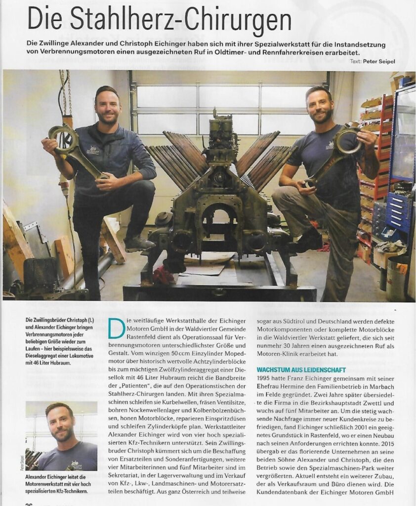 Unser 1.Sponsor, Fa. Eichinger Motoren aus Rastenfeld! Hier die Firmeninhaber Christoph und Alexander Eichinger, die unglaublich vorbildlich und sozial arbeiten in einer der Besten Fachzeitung.Wir danken auch den Firmengründer Hermine und Franz Eichinger,mit denen wir schon 2002 Spendengelder erhalten haben.Heute arbeiten die beiden Zwillinge sehr erfolgreich weiter und sind sehr bekannt weit über die Grenzen hinaus.Wir vom Benefizverein W4 danken ihnen von Herzen und wünschen ihnen alles erdenklich Gute und vor allem Gesundheit.